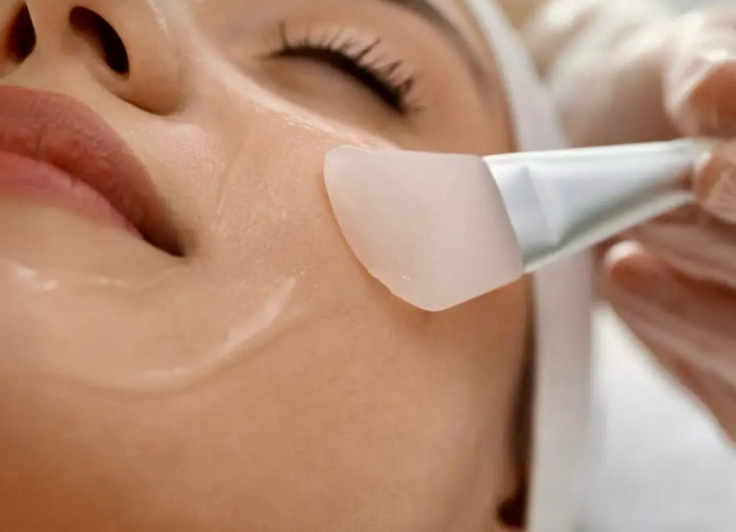 - Peeling: le produit est appliqué en surveillant la réaction de la peau durant toute la séance. On laisse agir quelques minutes, puis le produit est neutralisé, rincé ou juste apaisé par une crème